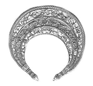 Найдены шейное украшение и браслет – общий вес 1,15 килограмм. Украшения являются несомненными атрибутами богатого захоронения сарматского времени (эпохи раннего железного века, IV до н. э. – V вв. н. э).