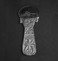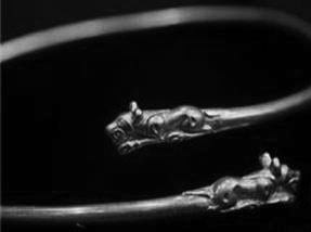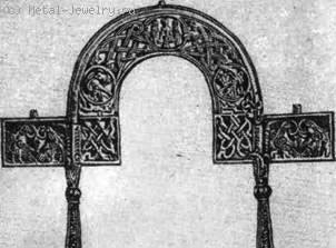 С другой стороны, вся фибула представляет собой змея (верхняя часть – его хвост). Змей – таинственное существо, обитающее в подземно-подводном мире, у корней «древа жизни». Он связан с истоками бытия, с тайной зарождения жизни и временными циклами, в рамках которых она разворачивается (спирали, покрывающие поверхность фибулы). Змей охраняет границу, отделяющую мир людей от мира предков, являясь хранителем изначальной мудрости и тайных знаний, покровителем волхвов и баянов.