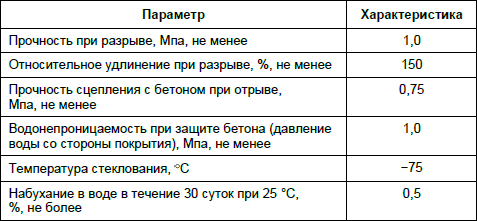 Основные технические характеристики мастик и покрытия «Гидрофор», «Битурэл», «Гермокров», «Полур» приведены в табл. 2.1.