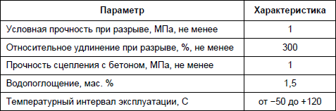 Таблица 2.3. Технические характеристики мастики «Термокор»