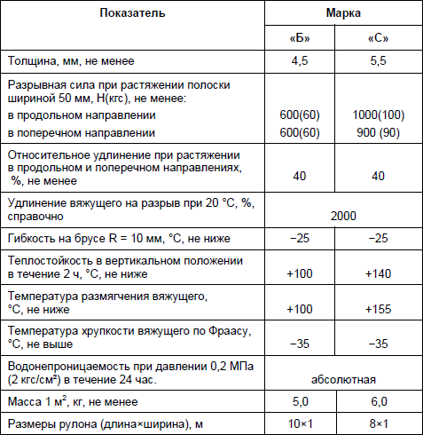Таблица 2.17. Технические характеристики «Техноэластмост»
