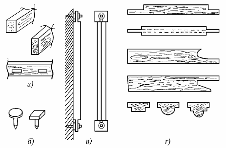 1) правила (доски или бруски разной длины и сечения, строганные или фугованные); применяют: