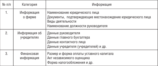Таблица 1.1. Информация, необходимая для создания фирмы в организационно-правовой форме ООО
