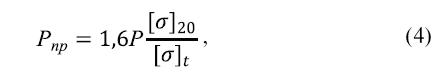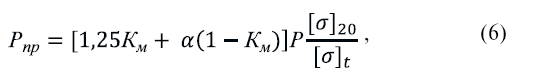 В случае если сосуд в целом или отдельные части сосуда работают в диапазоне температур ползучести и допускаемое напряжение для материалов этих частей при расчетной температуре [?]t определяется на базе предела длительной прочности или предела ползучести, разрешается в формулах (1), (7) вместо [?]t использовать величину допускаемого напряжения при расчетной температуре [?]m, полученную только на базе не зависящих от времени характеристик: предела текучести и временного сопротивления без учета ползучести и длительной прочности.