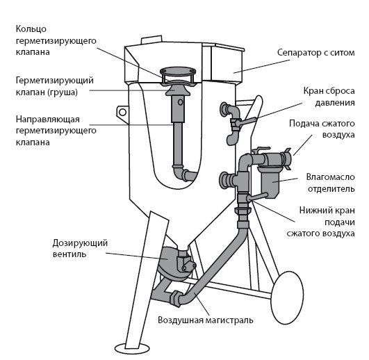 При абразивоструйной очистке должны соблюдаться требования «Правил устройства и безопасной эксплуатации сосудов, работающих под давлением» Гостехнадзора. Абразивоструйные аппараты должны иметь паспорта завода-изготовителя с указанием допустимого рабочего давления. Необходимо периодически проверять аппараты и результаты проверок заносить в их паспорта. Абразивоструйные аппараты должны быть оборудованы предохранительным клапаном, безотказность действия которого проверяется перед пуском аппарата по манометру путем подачи сжатого воздуха