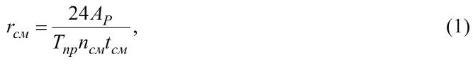 Среднесменное количество ремонтных рабочих rсм, необходимое для выполнения предстоящего ремонта суммарной трудоемкостью Ар при планируемой продолжительности простоя Тпр , определяется по выражению