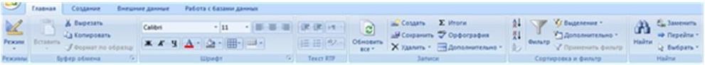 Рис. 1. Лента меню MS Access 2007 с вкладками