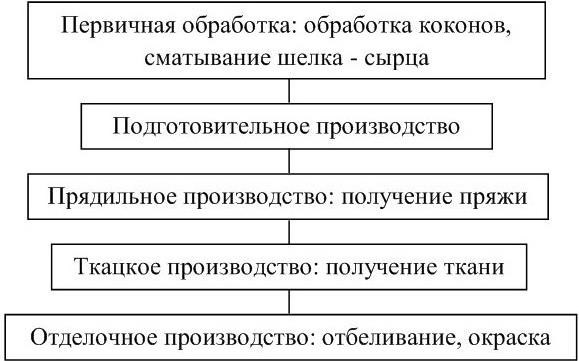 Для шелковых тканей характерны несколько другие этапы производства, нежели для шерстяных тканей (рисунок 8).