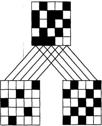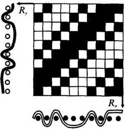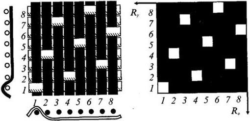 Рисунок 36 – Креповое переплетение, полученное наложением сатинового переплетения на сложную саржу