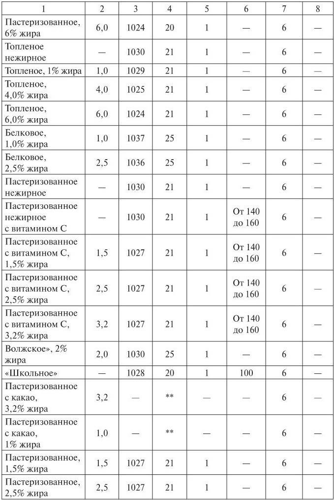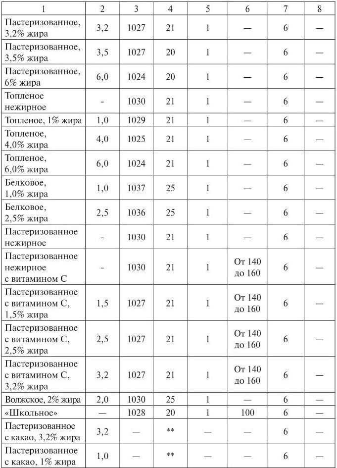 Пастеризованное молоко выпускают следующих видов: цельное, нормализованное, обезжиренное и восстановленное (реализуется как молочный напиток) (табл. 1.1).