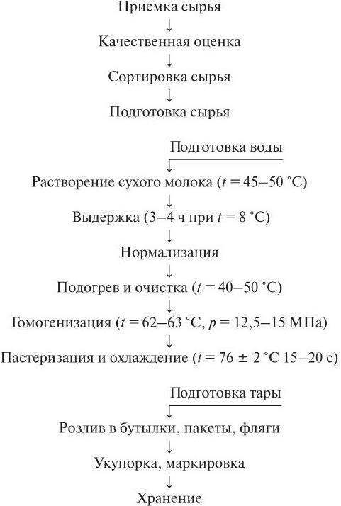 Рис. 1.2. Технологическая схема выработки пастеризованного восстановленного молока