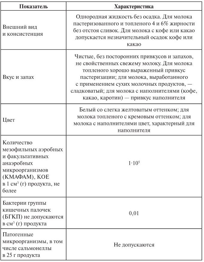По физико-химическим, органолептическим и бактериологическим показателям пастеризованное молоко должно соответствовать требованиям действующей НТД (табл. 1.2 и 1.3).