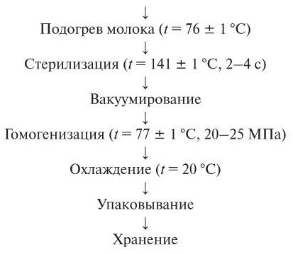 «Фата» – в потоке путем прямого нагрева молока инжекцией пара с последующим охлаждением и упаковыванием продукта в асептических условиях в пакеты прямоугольной формы из комбинированного материала;