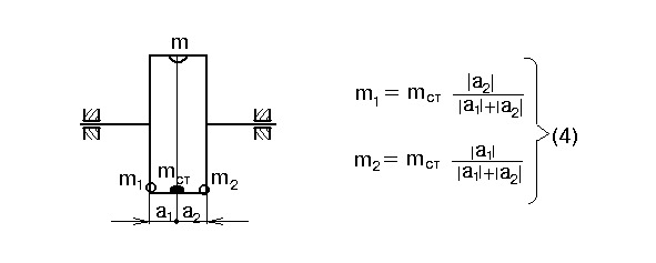 Иногда при статической балансировке корректирующие массы распределяются на две плоскости коррекции. В этом случае при распределении масс используются соотношения (4), приведённые ниже на рис.6.