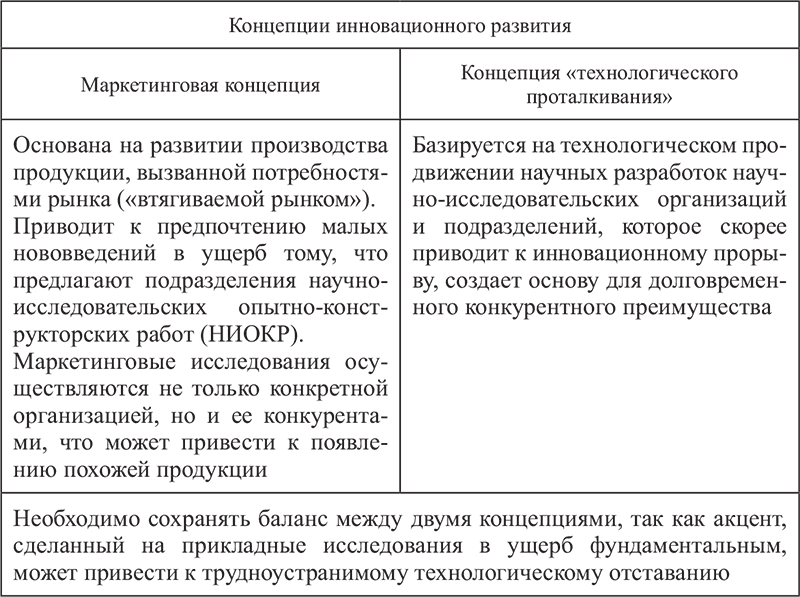 1. Характеристика концепций инновационного развития (табл. 1.4).