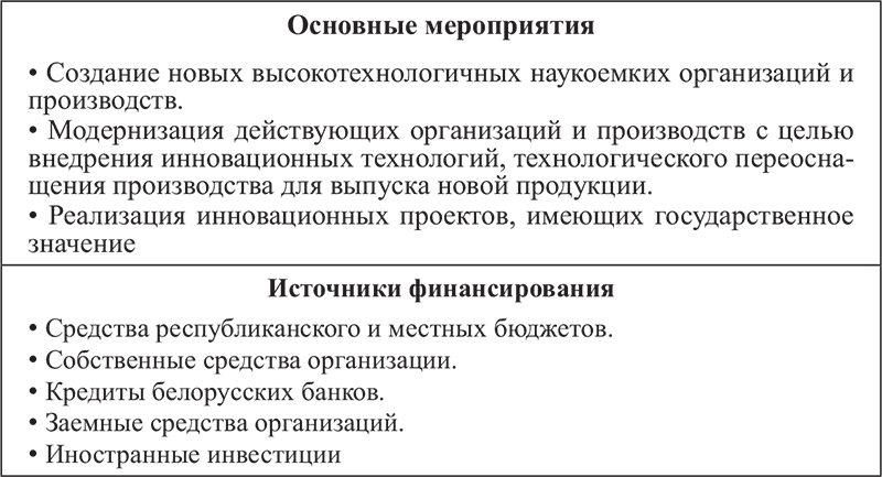 Рис. 1.5. Основные источники финансирования и мероприятия «Государственной программы инновационного развития Республики Беларусь на 2011–2015 гг.»