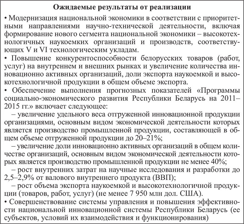 Рис. 1.6. Ожидаемые результаты от реализации «Государственной программы инновационного развития Республики Беларусь на 2011–2015 гг.»