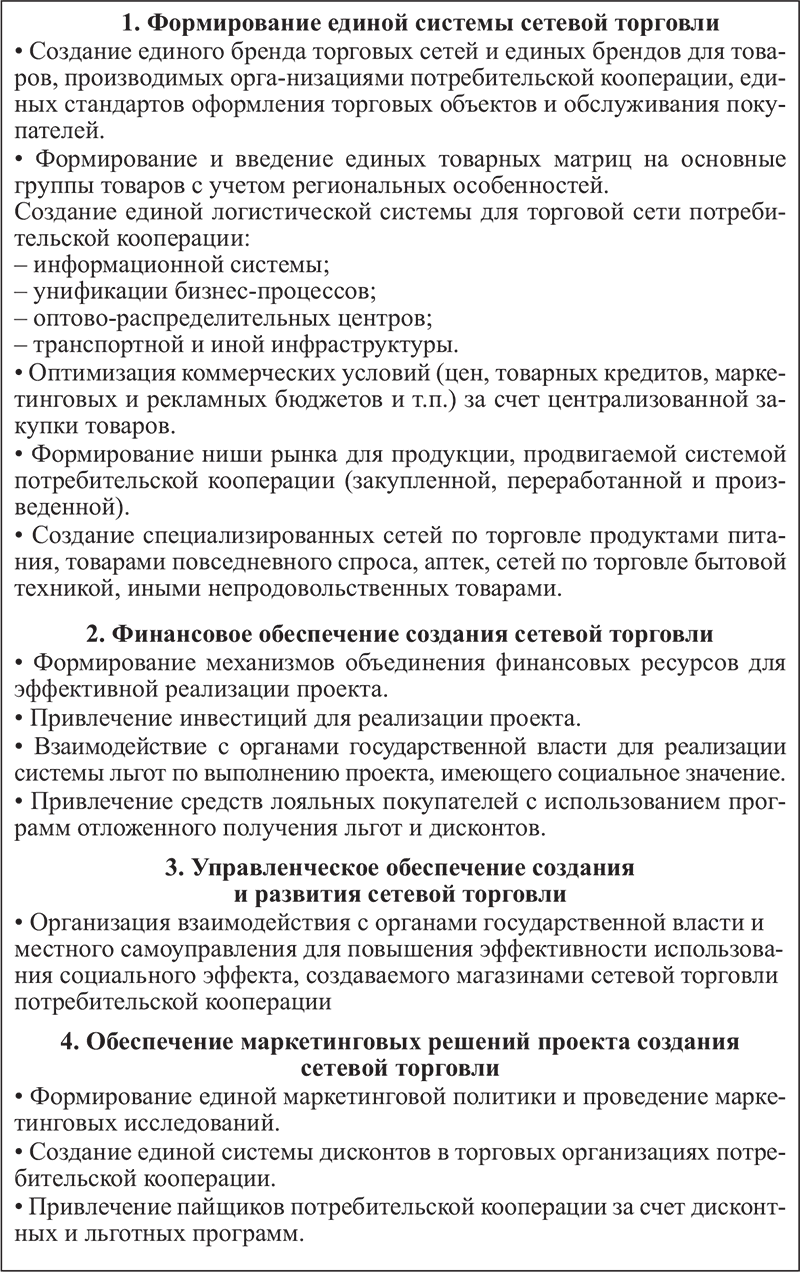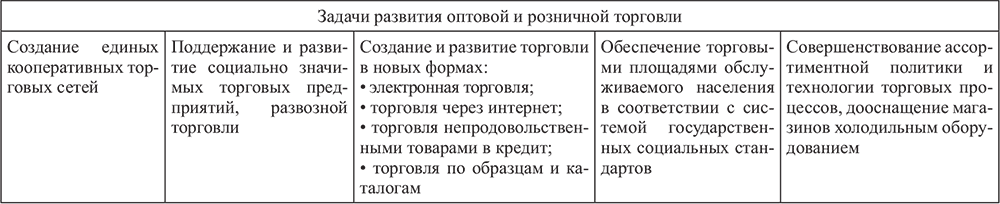 Таблица 1.6. Задачи развития оптовой и розничной торговли в соответствии с «Отраслевой программой развития потребительской кооперации на 2011–2015 гг.»