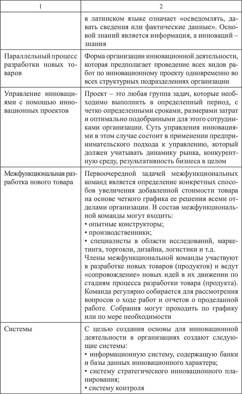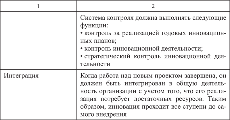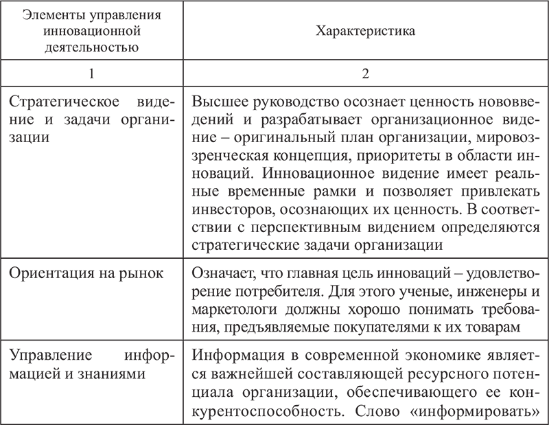 Таблица 2.9. Характеристики основных элементов управления инновационной деятельностью современной организации