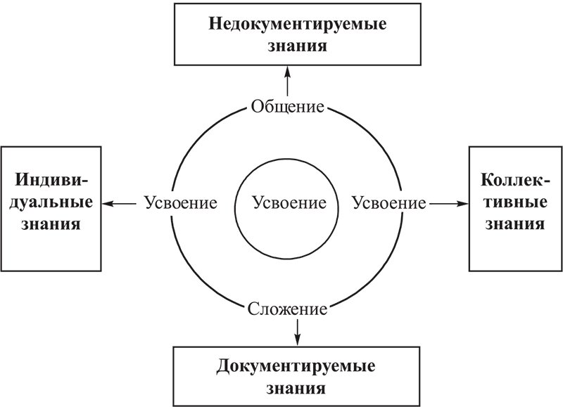 В современном бизнесе знания и управление ими с целью создания конкурентного преимущества становятся главным корпоративным приоритетом. Управление знаниями и управление информацией – разные понятия. Хотя оба процесса направлены на сбор, обработку и распространение знаний, управление информацией имеет дело лишь с первым видом знаний, т. е. со знаниями, которые можно выразить словами и записать, управление знаниями имеет дело с таким видом знаний, который связан с пониманием. Такие знания (недокументируемые) зачастую интуитивны, невыражаемы словами, но в то же время представляют собой большую ценность, если находятся в сознании высококвалифицированных сотрудников. Эти знания могут потеряться, если сотрудники покидают организацию.