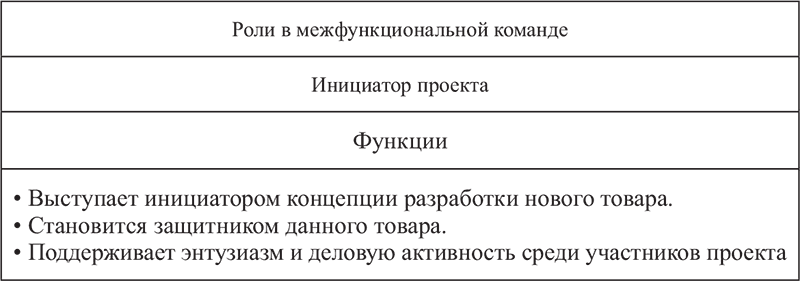 Инициатор проекта. Команда выступает инициатором концепции разработки нового товара, защитником данного товара, поддерживает энтузиазм и деловую активность среди участников проекта.