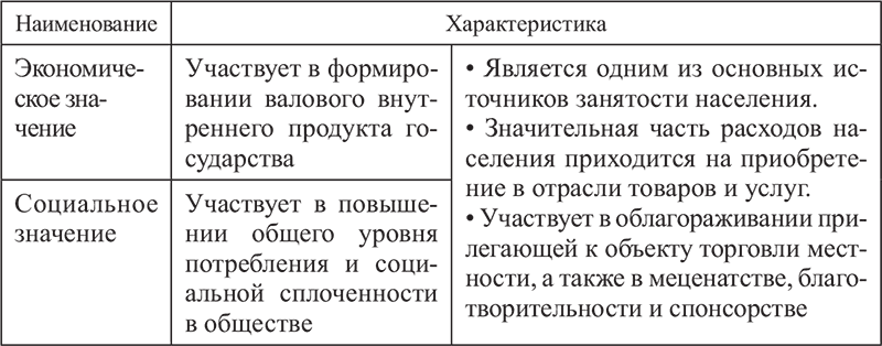 Таблица 3.1. Социально-экономическое значение торговой отрасли
