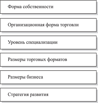 Рис. 3.5. Основные признаки для характеристики структуры отрасли розничной торговли