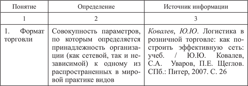 9. Определение понятия «формат торговли» (табл. 3.3).