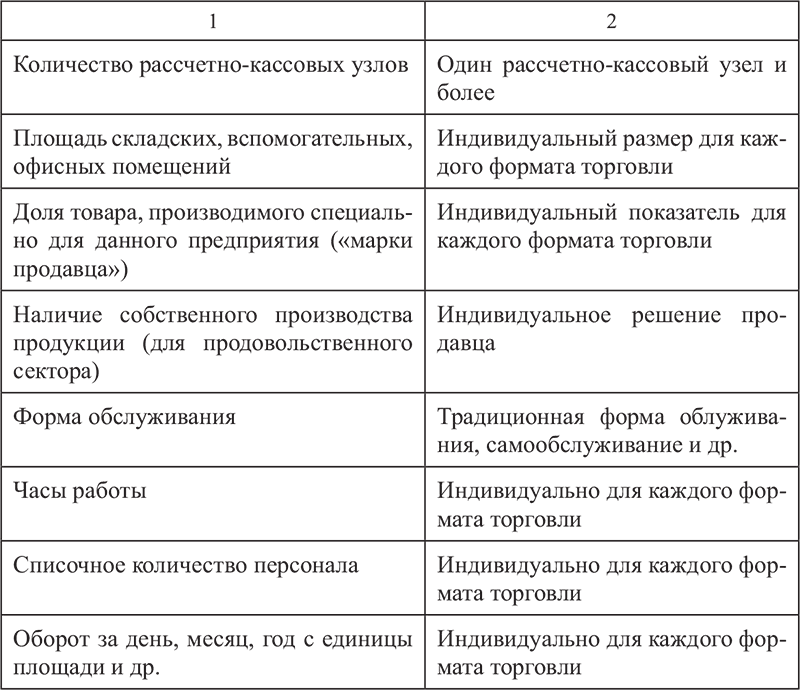 Основными параметрами отнесения предприятия к какому-либо из форматов являются: