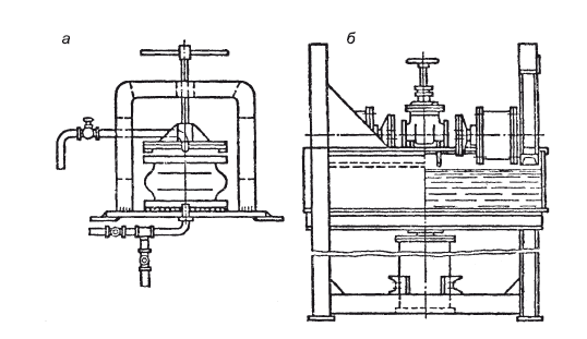 Рис. 4.7. Приспособление (а) и ванна (б) для испытания арматуры: