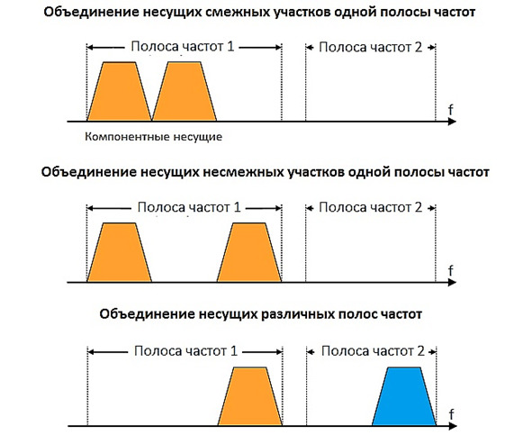 На рисунке 2.1 представлены возможные варианты использования функции объединения несущих.