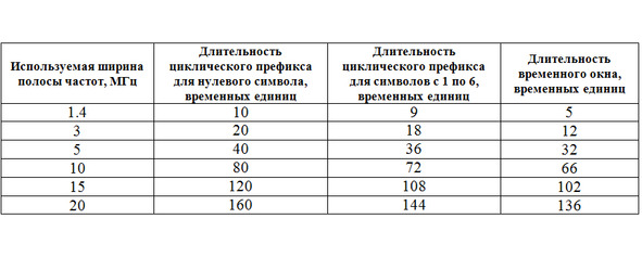 Минимальные требования к величине вектора ошибки также должны выполняться для временного окна, имеющего центр, совпадающий с центром циклического префикса. В таблице 2.8 приведены соответствующие значения длительности указанного окна для различных значений ширины полосы частот и значений длительности нормального циклического префикса соответственно. Длительность указана во временных единицах, обозначаемых Ts (Ts = 1/3072000 ? 0.0325 мкс).