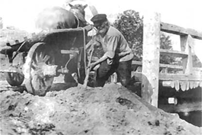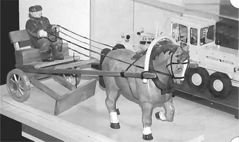 Рис. 16. Конная грабарка. Выгрузка грунта производилась с помощью специального рычага для опрокидывания «кузова» (прообраз нынешнего автомобиля-самосвала)