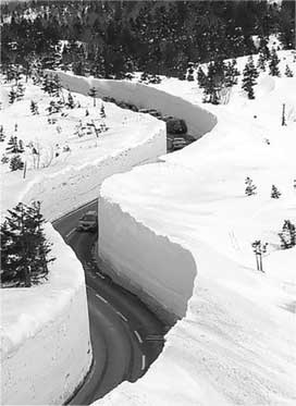 Рис. 20. Если на дороге М-4 большие снежные заносы случаются раз в 5–10 лет, то для примера мы приводим снежные заносы, которые случаются ежегодно на острове Хокайдо в Японии (до 15 м)