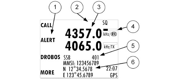 6. Окно ЦИВ с номером MMSI, координатами и обозначением источника информации (GPS).