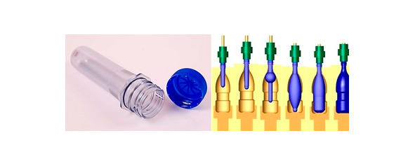 Рис. 16. Пластиковые преформы и процесс изготовления бутылок