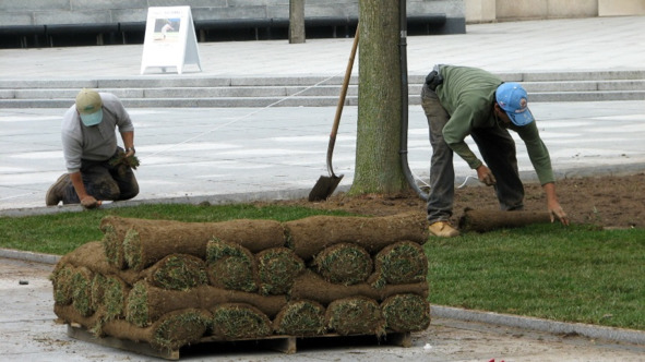 Рис.17. Укладка газона, выращенного промышленным способом