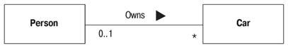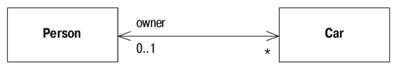 Bidirectional Association – apair of related properties in opposite directions. Car class has a property owner: Person [1], and the class Person has a property cars: Car [*].
