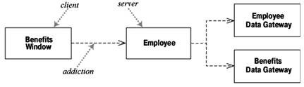 The second important point of this diagram: there is no direct relationship of two classes of DataGatewau BenefіtsWіndow. If these classes are changing, you may need to change the class Emplouee. But if the changes only Emplouee class implementation, not the interface, this change ends.