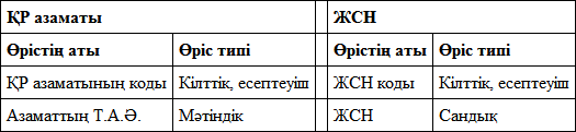 Біз бірінші ?алыпты формада?ы кестені аламыз. Айтыл?ан кемшіліктерді жою ?шін ?рі ?арай ?алып?а келтіру керек. Осы кестені? ??рылымы келесі т?рде келтіріледі: