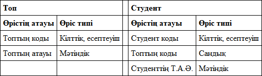 ТА?ДАУ?а байланысты екі ?рістен т?ратын ??рама кілт ?рекет етеді, ал СТУДЕНТке байланысты АТЫ-Ж?НІ кілттік ?ріс болып табылады.