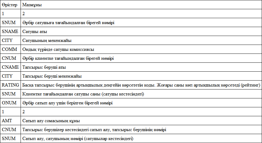 Реляциялы? Д?-ны жобалауда ?ш кестеден т?ратын SQL тіліні? негізін ?йренеміз (5.3, 5.4 ж?не 5.5-кестелер).