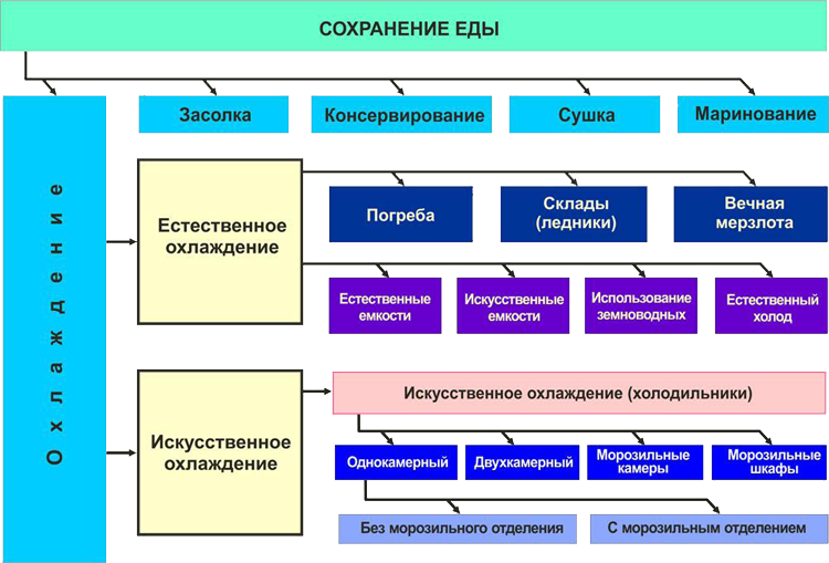 Кроме того, в средних широтах земного пояса обычно жители сохраняли продукты на зимнее время, используя естественное осенне-зимнее похолодание.