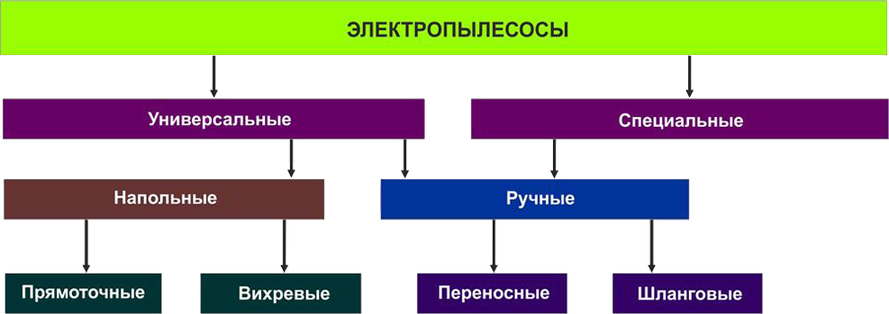Рисунок 3.8 – Классификация электропылесосов.