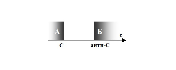 Формулировка противоречия свойств требует, чтобы «с» была одновременно в зоне «А» и в зоне «Б», что исходя из графика невозможно (рис. 2.2).