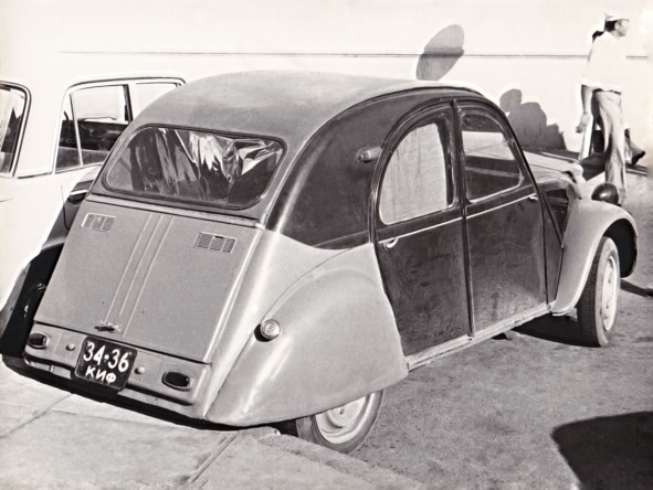 На капоте выпущенного до 1960 г. «Ситроенчика» видны узкие продольные полоски (Ялта, 1970-е)