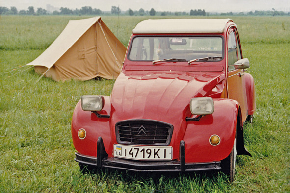 Citroen 2CV6 Club 1981 г. в. c прямоугольными фарами журналистов киевской газеты «Автомир» (Москва, 1997)