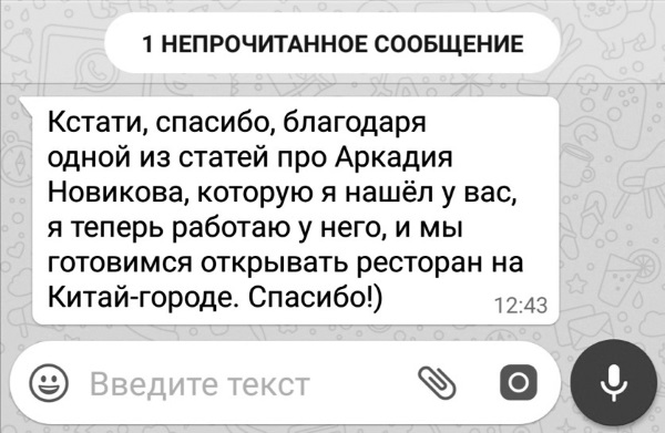 На нашем сайте rabotarestoran.ru мы часто пишем полезные статьи о том, как найти работу в ресторанном бизнесе. В том числе даем секретные лайфхаки о карьере в известных ресторанных холдингах. Однажды мы получили вот такое сообщение: