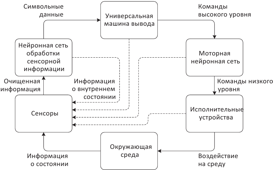 Надо отметить, что агентный подход к разработке искусственного интеллекта чаще всего рассматривается в рамках так называемой гибридной парадигмы, которая представляет собой смесь нисходящей и восходящей парадигм, берет из них лучшее и старается нивелировать отрицательные стороны. Гибридная парадигма и агентный подход будут рассмотрены в самом конце этой главы.