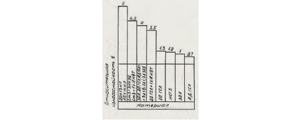 На рис. 1.15. изображена диаграмма относительной износостойкости наплавок при кавитационном износе, построенная по результатам испытаний образцов на струеударной установке. В качестве эталонных были приняты образцы из армко-железа (см. http://www.metaltrade.ru/abc/a/armko_jelezo.htm)